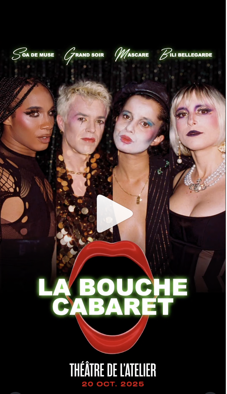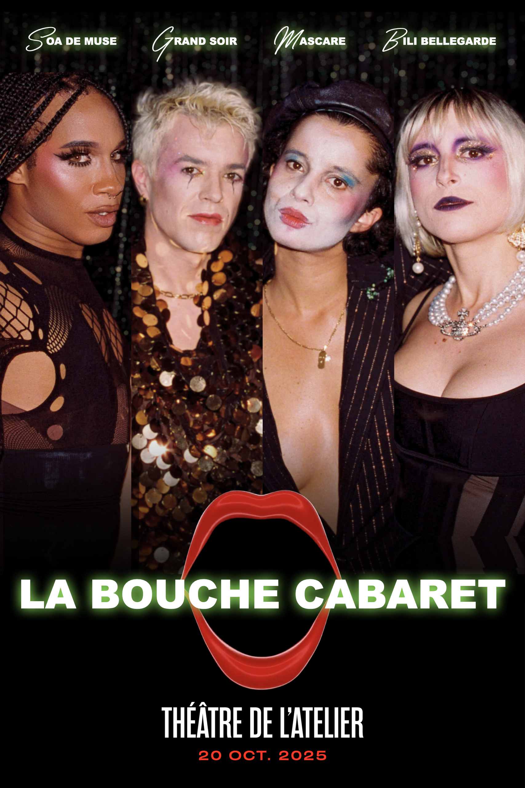 Né en février 2022 dans un sous-sol en béton parisien, La Bouche est un cabaret autogéré, porté par un quatuor d’artistes : Grand Soir, pianiste et chanteur, Mascare, poète et DJ, Bili Bellegarde, diva à la voix d’or, et la flamboyante Soa de Muse, artiste pluridisciplinaire et star du Drag Race TV show. À la fois punk, populaire et électro, La Bouche est un savoureux mélange de variété française, nourrie de l’Underground Resistance et du Queer Nation : un cabaret libre. Mêlant chansons originales, spoken word et grands classiques revisités avec une bonne dose de malice et de tendresse, La Bouche cabaret ne sera pas seule sur scène. Elle convie ses proches pour amplifier son énergie collective et ouvrir la saison avec intensité et douceur.